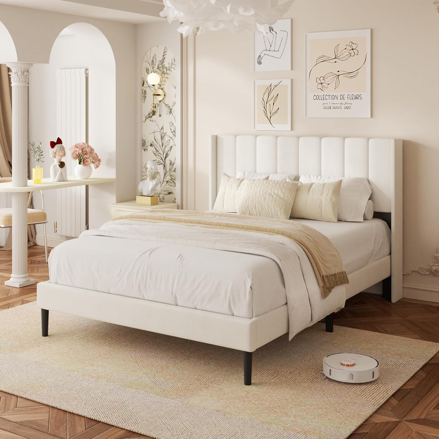 The HAOARA Queen Bed Frame pairs a striking vertical channel tufted wingback headboard in beige velvet with a 1,000 lb weight capacity metal-wood combo platform , a combination of style and substance that punches above its tier. It's an excellent pick for couples or style-conscious buyers who want a complete, polished bedroom look without purchasing a separate headboard or box spring.