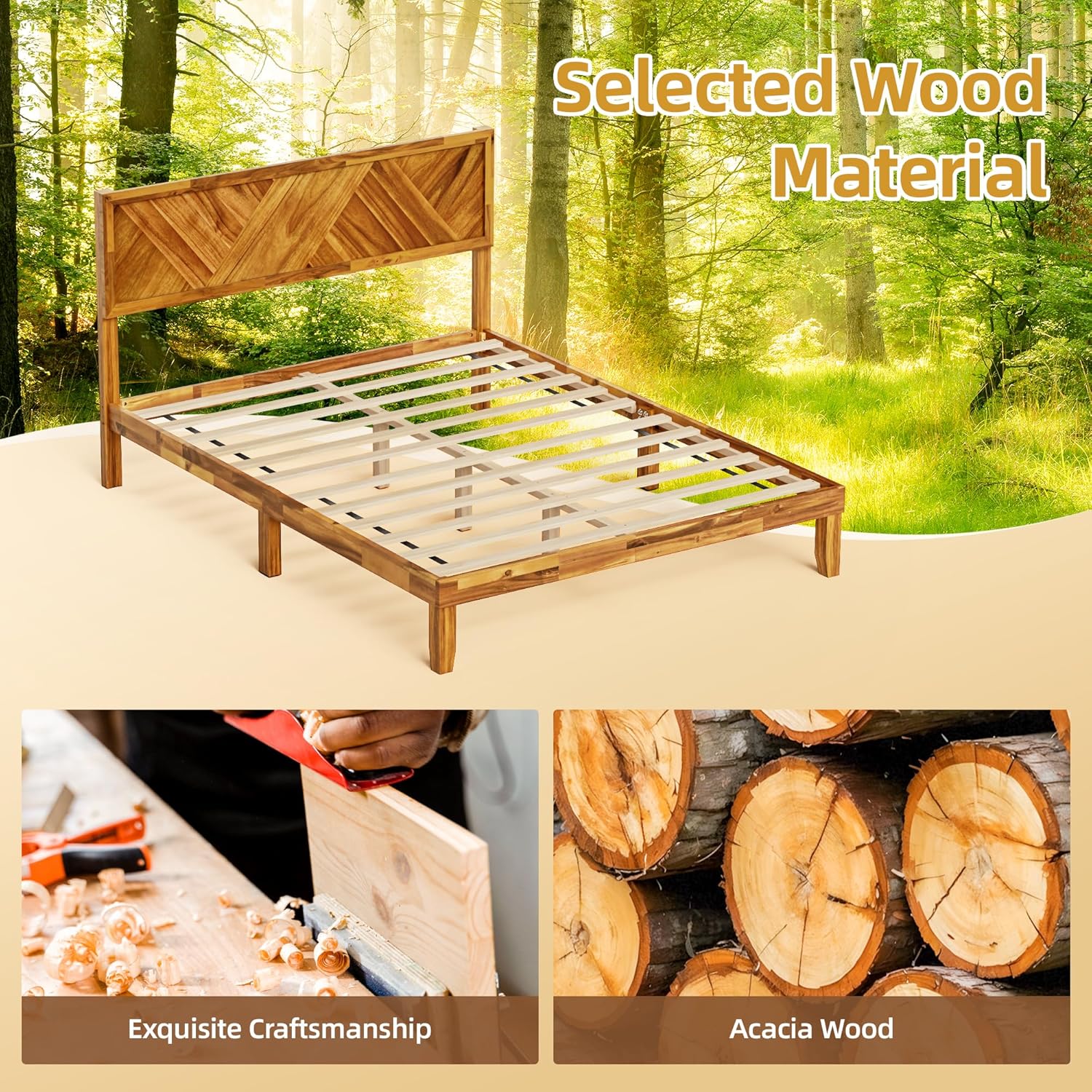 The TOLEAD Queen Bed Frame stands out for its solid acacia wood construction , a hardwood known for exceptional durability and striking natural grain finish. It delivers a complete bedroom solution with an included wood headboard, built-in open shelf storage, and 12-slat support system that eliminates the need for a box spring.